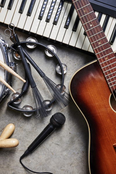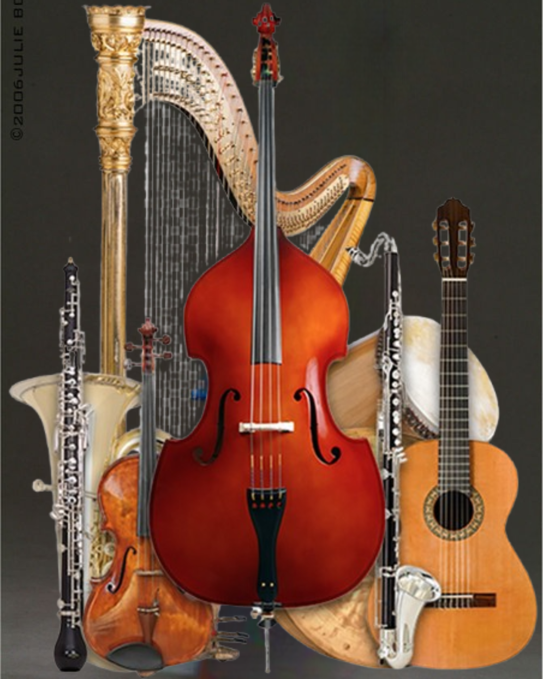 Qualquer instrumento, canto, e estilo de música como erudita, popular, folclórica, etc.